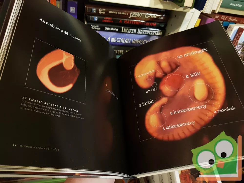 Ez a könyv rendkívüli, mindezidáig szokatlan tanulmányozása a kisbaba fejlődésének. A fejezeteket olvasva, melyek a heteket összekapcsolva a hónapokkal mindvégig nyomon követik a terhesség egyes fejlődési fázisait, lehetőségünk nyílik más szempontból is megvitatni, vizsgálni, szemlélni azokat a dolgokat, melyek felett korábban átsiklott figyelmünk vagy ezidáig nem vettünk róluk tudomást. A várandósság mérföldköveit most először követhetjük nyomon: a fogantatást, a szervek kialakulását, a kicsi szív első dobbanását, a szemszín és az apró ujjak kialakulását, a lábak és kezek első megmozdulását… A kismama 9 hónapon át folyamatosan, napról- napra (oldalról- oldalra) nyomon követheti a baba fejlődését a fogantatástól egészen a világra jövetelig, megtudhatja, mi történik éppen a terhessége adott napján. A gyermek fejlődése, növekedése az anyaméhben – annak minden szépsége és csodája itt van ezeken a felejthetetlen képeken, amiket a képi megjelenítés technológiájának forradalmi újításai képesek a szemünk elé tárni.