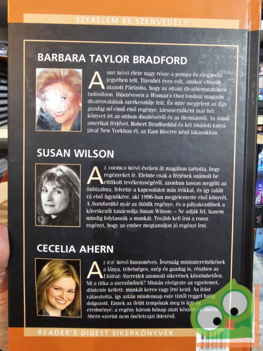 Barbara Taylor Bradford:A brit írónő élete nagy része a pompa és elegancia jegyében telt. Tizenhét éves volt, amikor először utazott Párizsba, hogy az ottani divatbemutatókról tudósítson. Húszévesen a Women's Own londoni magazin divatrovatának szerkesztője lett. És mire megjelent az Egy gazdag nő című első regénye, társszerzőként már hét könyvet írt az otthon díszítéséről és az illemtanról. Az írónő amerikai férjével, Robert Bradforddal és két imádott kutyájával New Yorkban él, az East Riverre néző lakásunkban.