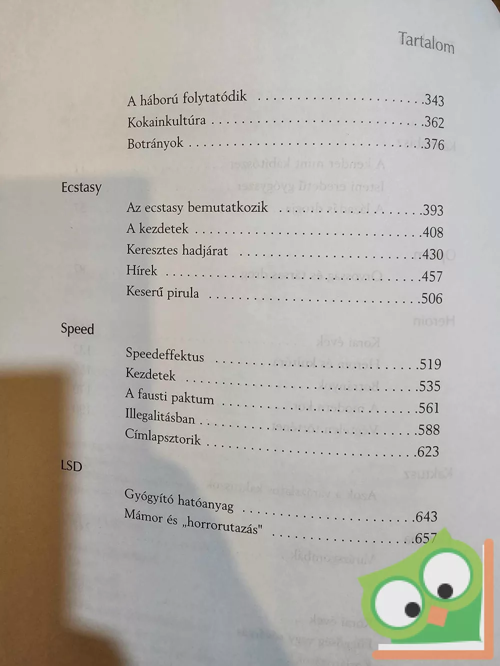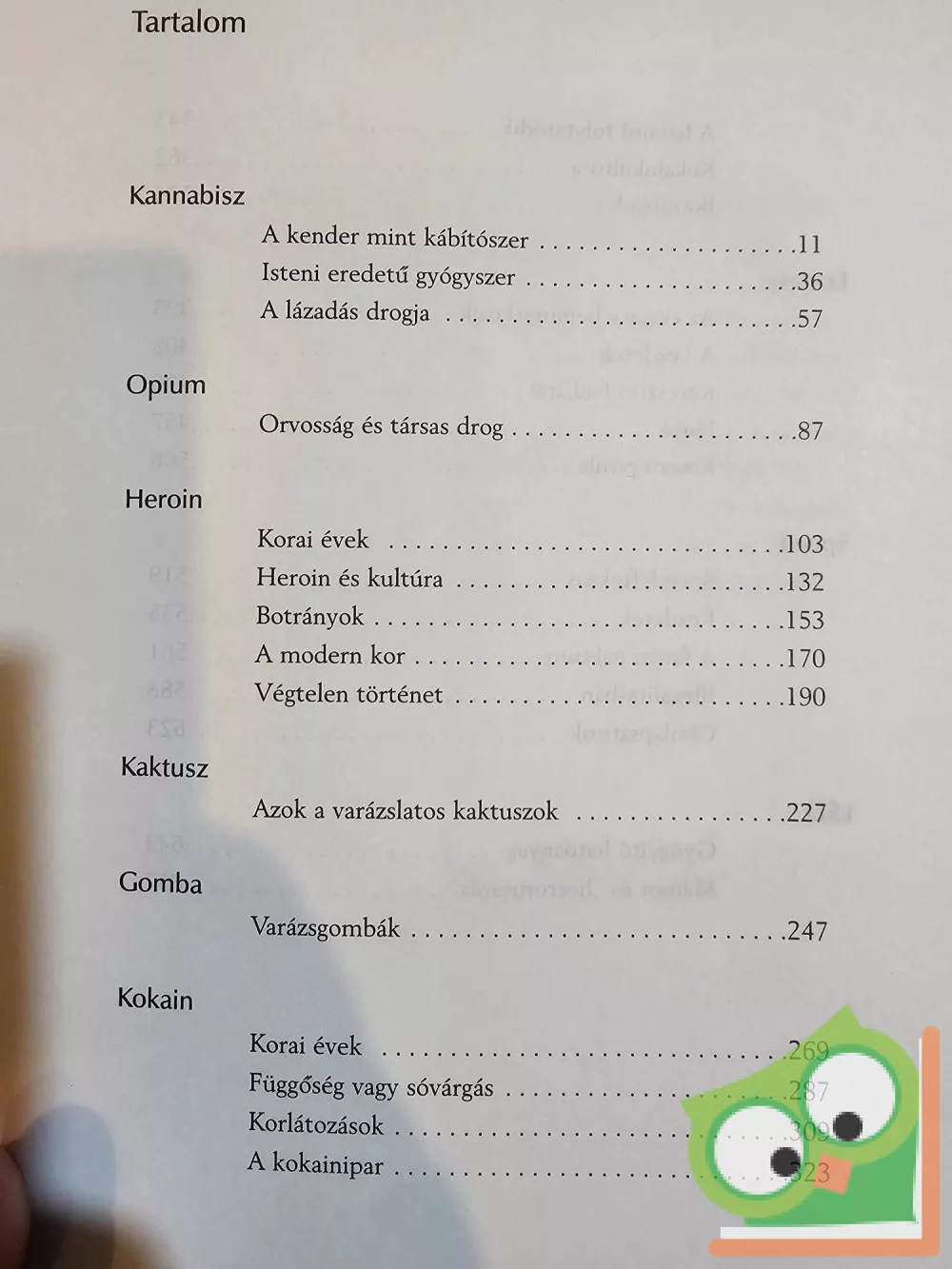 Ez a könyv nem a drogok mellett szól. A döntést, hogy szed-e valaki drogot vagy sem, mindenkinek magának kell meghoznia. Senkinek nem tiszte, hogy a drogfogyasztás mellett érveljen, de napjainkban a tiltott szerek fogyasztása az egyik leginkább kedvelt „szabadidős tevékenység”, amit az is jól mutat, hogy az iparág forgalmát évi 400 milliárd amerikai dollárra becsülik. E könyv néhány közismert kábítószer történetét dolgozza fel, első előállításuktól a terápiás és gyógyászati felhasználásukon keresztül addig, amíg elérték az öröm- és élvezetszerzésben betöltött szerepüket. Az egyes drogokhoz kapcsolódva bemutatjuk, hogy az orvosi felhasználásból a mindennapi életbe, a szibarita, élvhajhászó világba kikerülve, miként kapcsolódott hozzájuk egyre drákóibb törvénykezés.