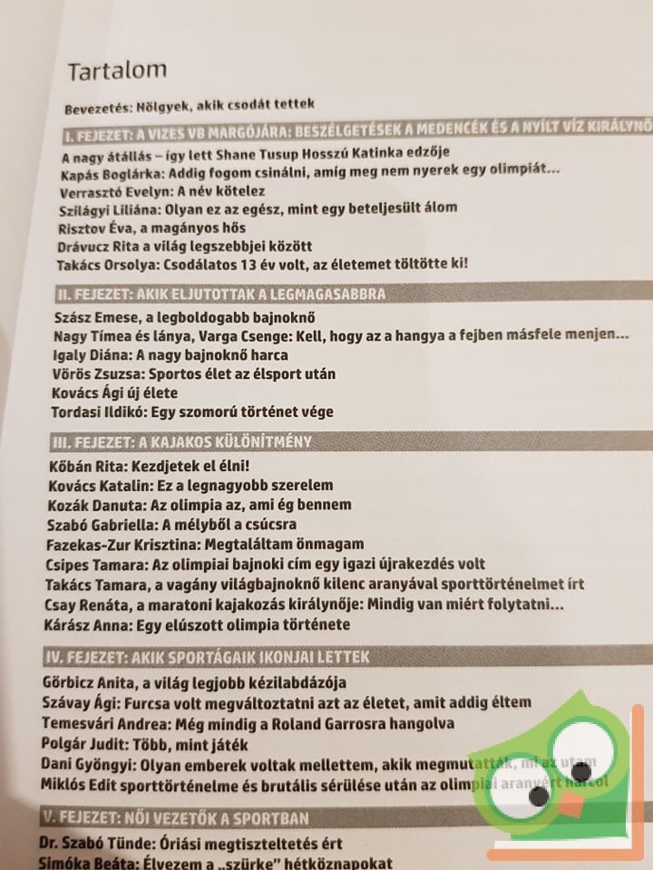 A magyar sportnak a riói olimpián elért 8 aranyérméből hét (!!!) a gyengébb nem képviselőihez fűződik. Hosszú Katinka három aranyérme, Kozák Danuta ugyancsak három győzelme – kettőben társaival, Szabó Gabriellával, illetve a négyes többi tagjával, aztán Szász Emese nem várt, ám annál örömtelibb vívó bravúrja – olyan fantasztikus sikere a magyar nőknek, hölgysportolóinknak, amilyen arányban ez, nyugodtan állíthatjuk, a sporttörténelemben egyetlen országban sem fordult elő. El kell ismerni: 2016-ban, s aztán 2017-ben a nagy világversenyeken is a nők mentették meg a magyar sport becsületét, valamennyi férfi kalapot emelhet előttük. Hiszen mi lett volna nélkülük mondjuk tavaly, az olimpián, azzal az egy szem férfi aranyéremmel? … Minden idők legsikertelenebb olimpiája, így viszont joggal büszkélkedhetünk vele: ez igazi férfi(?), bocsánat, női munka volt… Mindezeknek az eredményeknek – és a 2017-ben is folytatódott remekléseknek – hosszú évek óta hűséges krónikása Bocsák Klára, aki a sikerszerzőkkel, és még sok-sok másik különleges sportoló nővel sajátos beszélgetéseket, afféle női csevegéseket folytatott. Tessék, íme: szubjektív válogatás a közelmúlt és a jelen több száz interjújából, ugyancsak szubjektív témafelosztásban.