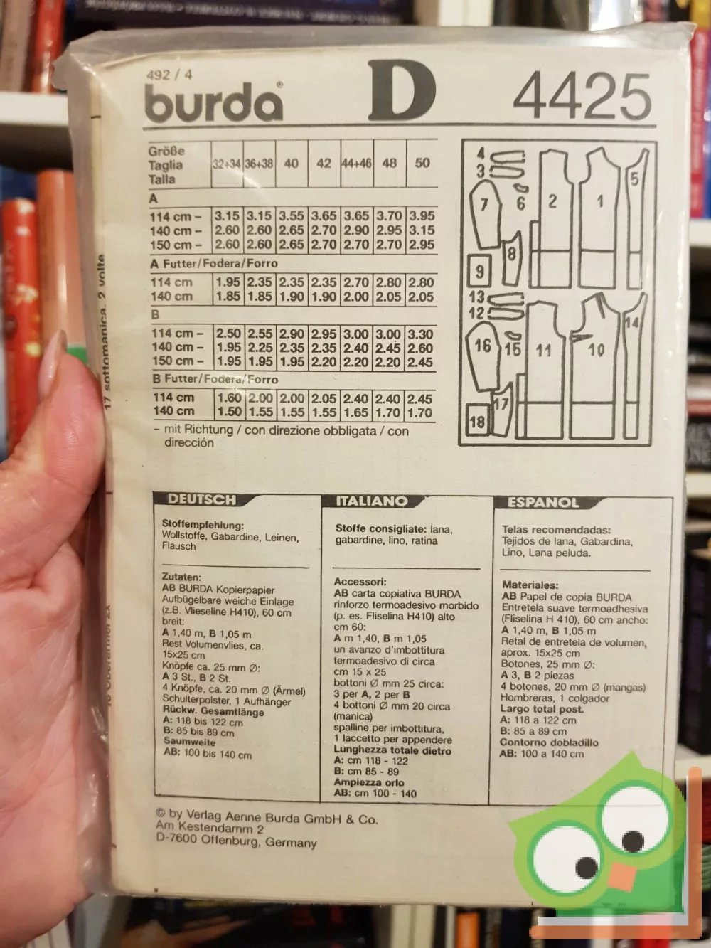 Burda modell szabásmintával fóliában. Német, olasz és spanyol nyelven.