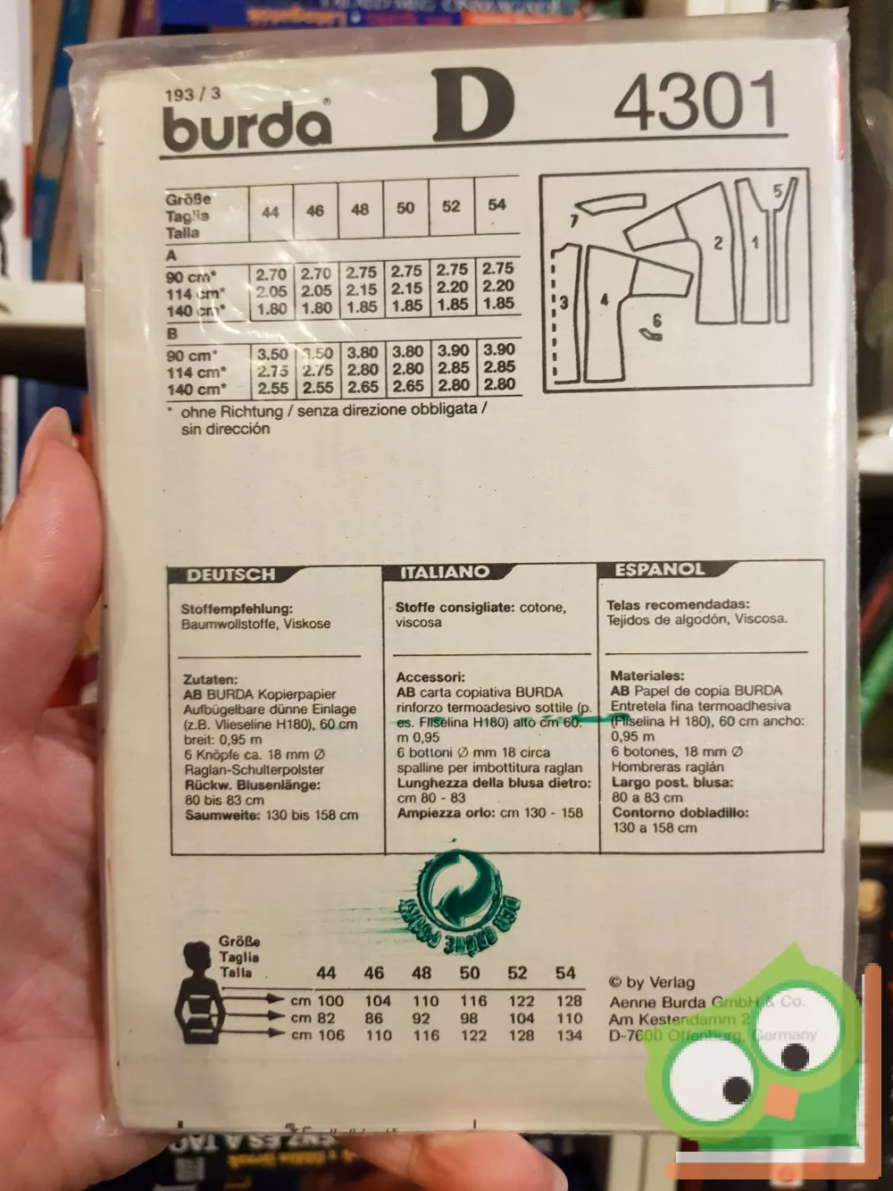 Burda modell szabásmintával fóliában. Német, olasz és spanyol nyelven.