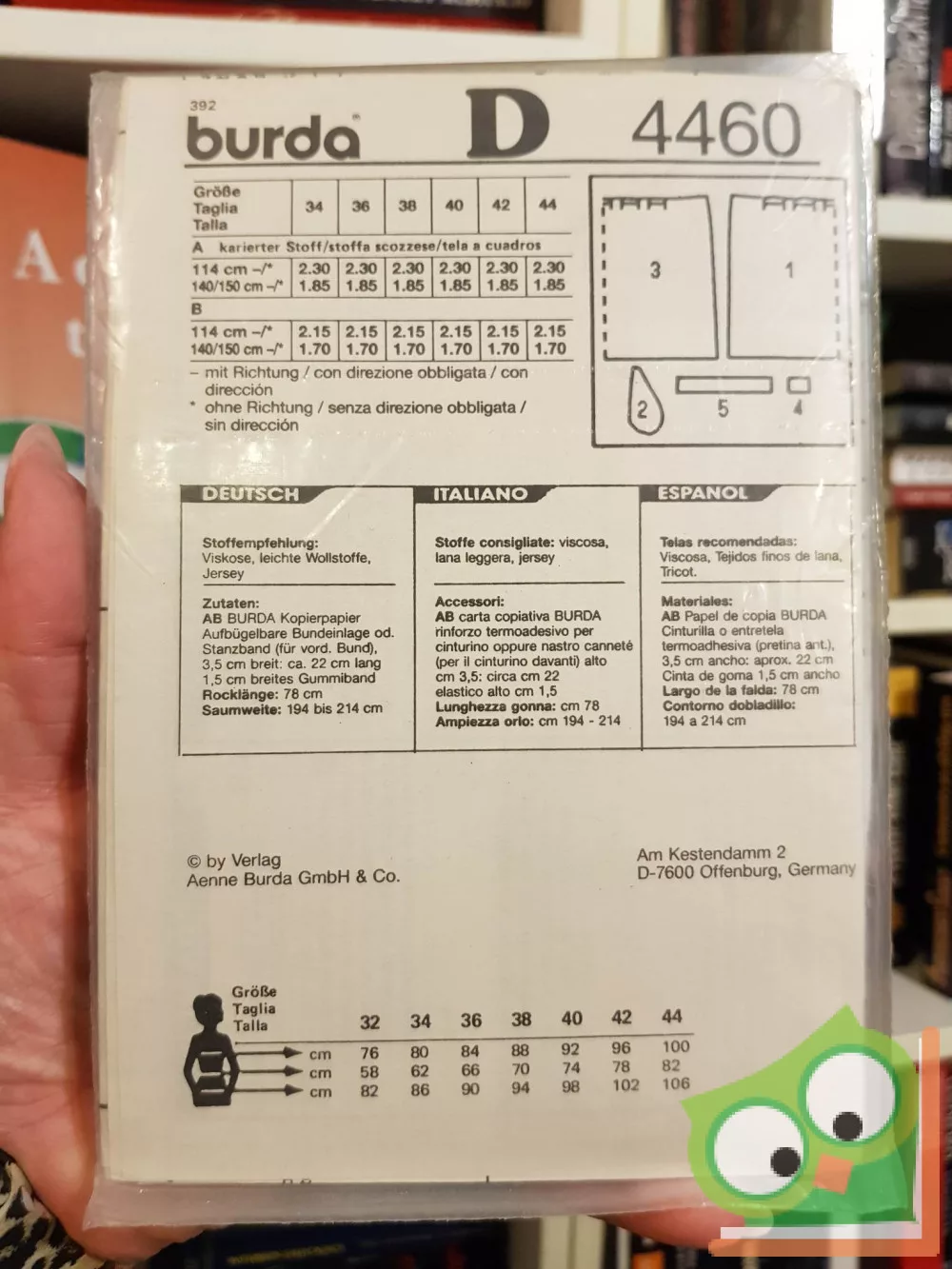 Burda modell szabásmintával fóliában. Német, olasz és spanyol nyelven.