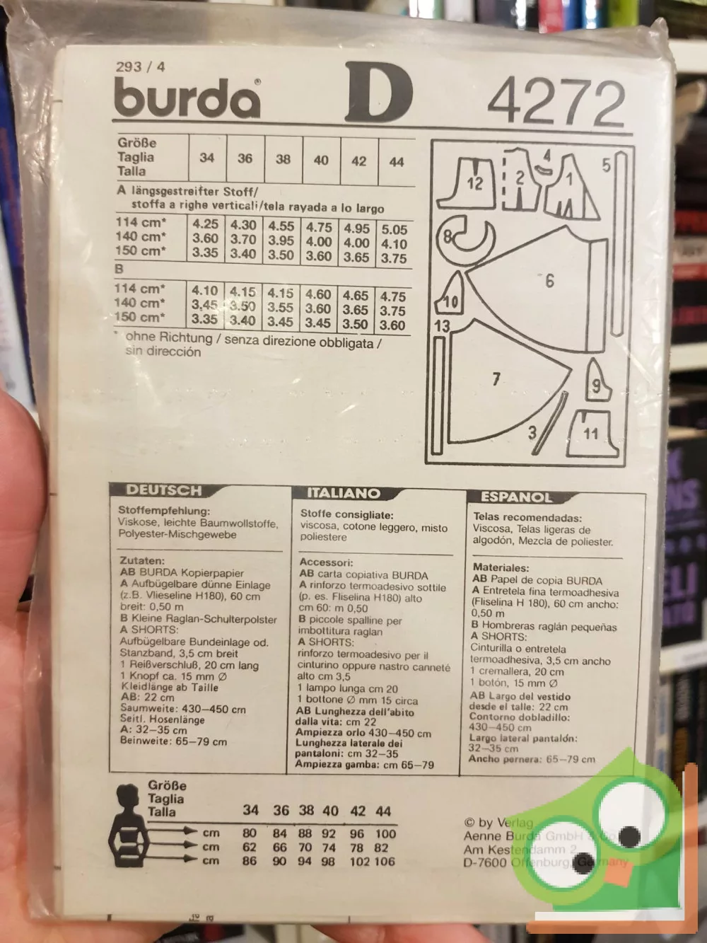 Burda modell szabásmintával fóliában. Német, olasz és spanyol nyelven.