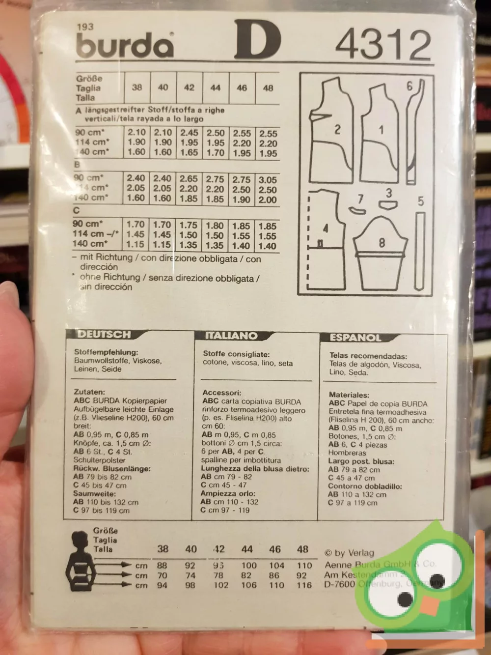 Burda modell szabásmintával fóliában. Német, olasz és spanyol nyelven.