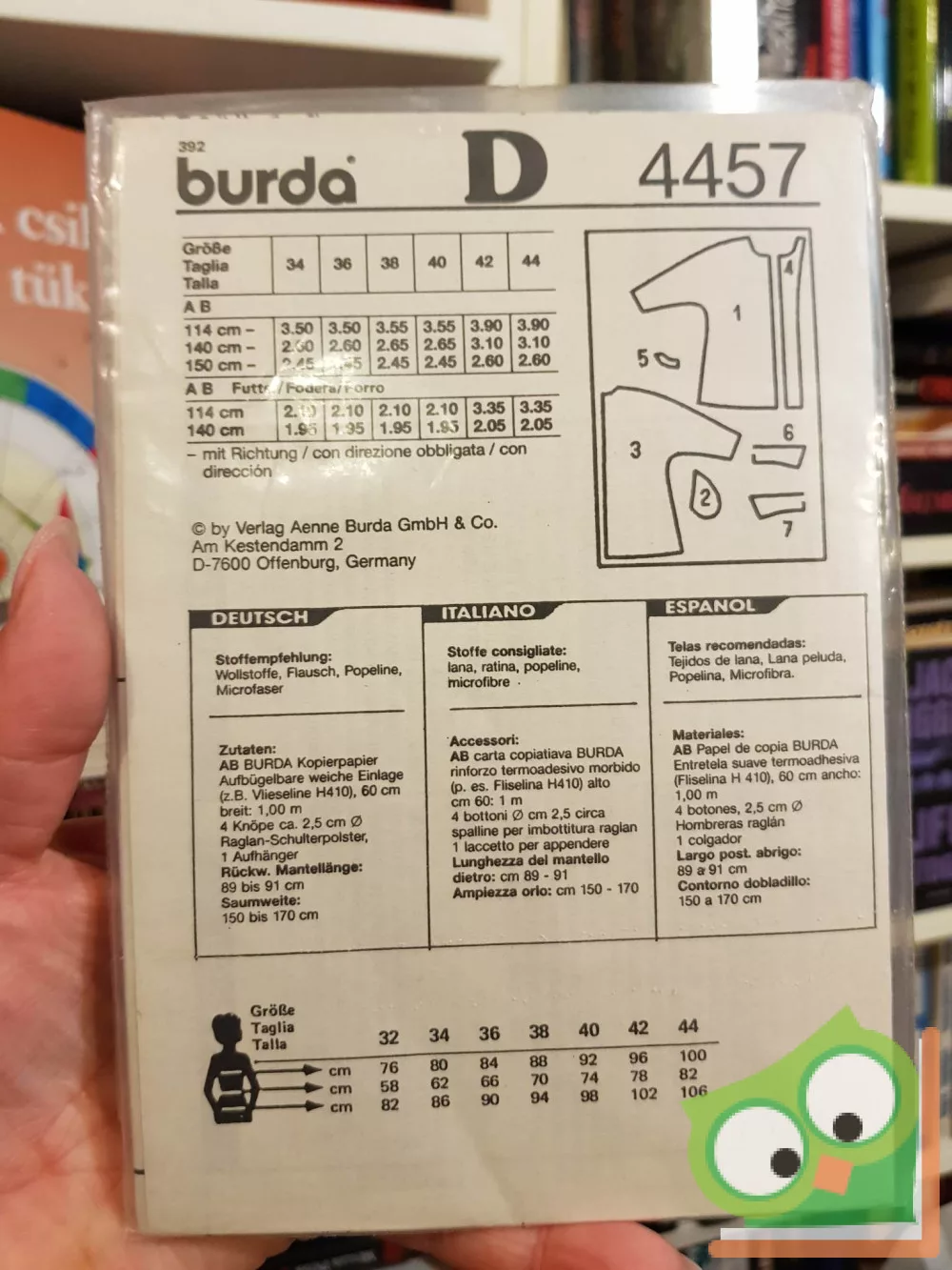 Burda modell szabásmintával fóliában. Német, olasz és spanyol nyelven.