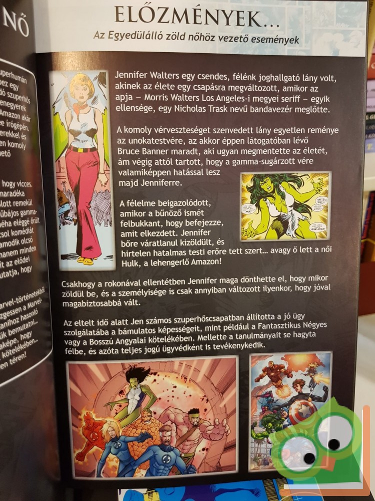 Senki sem mondta, hogy New Yorkban könnyű egyedülállónak lenni. De amikor sztárügyvéd vagy, Jennifer Walters, vagyis Amazon a neved, akkor egészen borzalmas! Most mindenki kedvenc jáde óriása olyan kihívás elé kerül, amilyennel még sosem találkozott a Goodman, Lieber, Kurtzberg és Holliway ügyvédi irodában, amely a szuperhumán ügyekre szakosodott.
