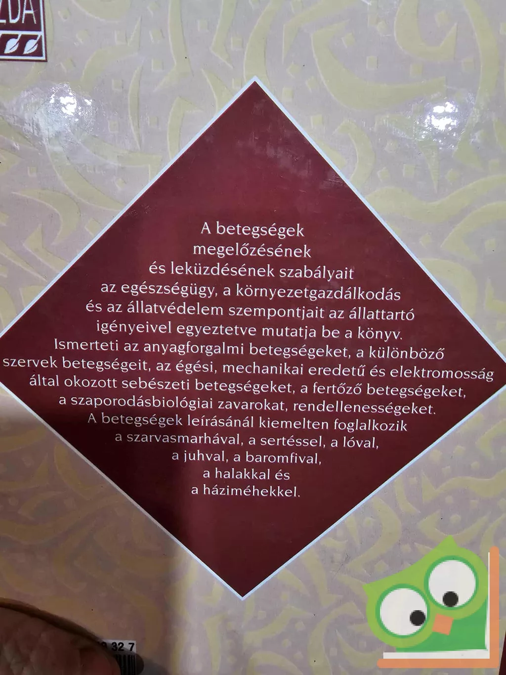 A betegségek megelőzésének és leküzdésének szabályait az egészségügy, a környezetgazdálkodás és az állatvédelem szempontjait az állattartó igényeivel egyeztetve mutatja be a könyv. Ismerteti az anyagforgalmi betegségeket, a különböző szervek betegségeit, az égési mechanikai eredetű és elektromosság által okozott sebészeti betegségeket, a fertőző betegségeket, a szaporodásbiológiai zavarokat, rendellenességeket. A betegségek leírásánál kiemelten foglalkozik a szarvasmarhával, a sertéssel, a lóval, a juhval, a baromfival, a halakkal és a háziméhekkel.