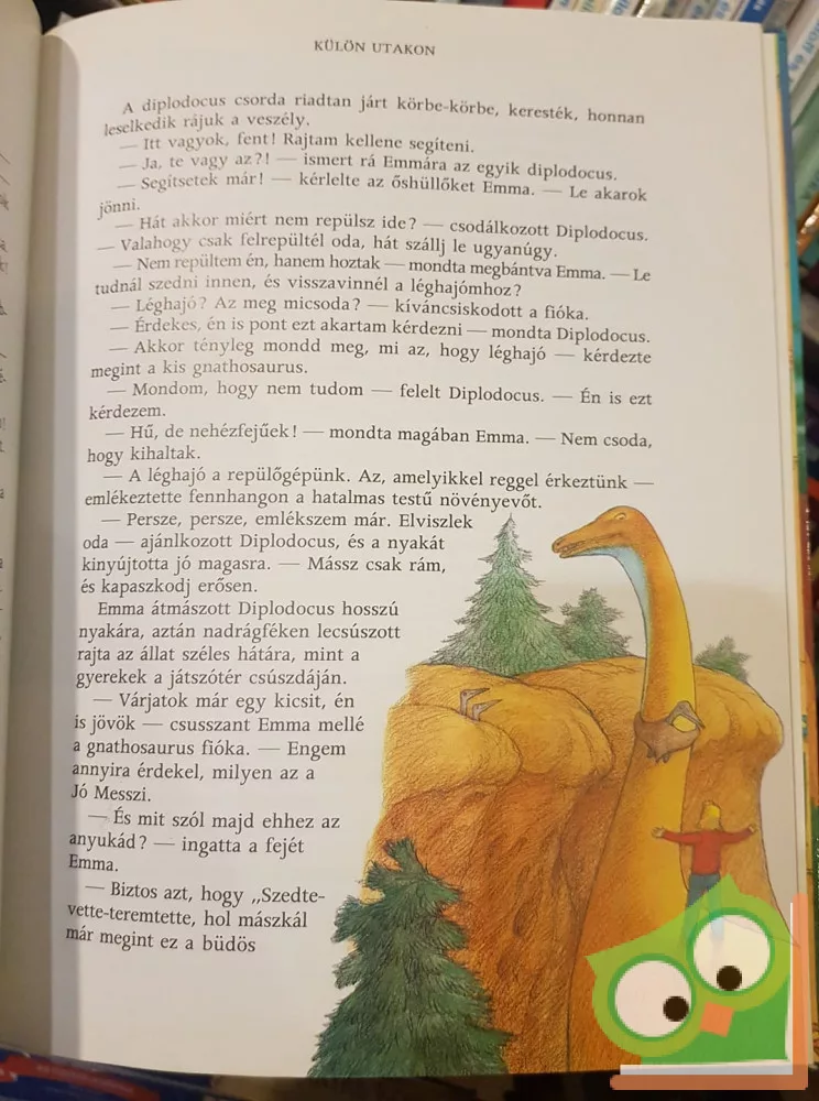 Akik olvasták a Léghajóval a világ körül c. könyvet, azok tudják, hogy Emma Dollybuttnak, no meg ikeröccseinek nagy szerencséjére bácsikájuk, Gerry a megszólalásig hasonlít Gerald Durrellre. Abban a kötetben Gerry bácsi és a gyerekek utazásuk során valóságos szinuszgörbét rajzoltak a földgömbre – minden nevezetes tájra eljutottak. Gerry, a Belladonna léghajó tervezője és vezetője ezúttal nem térbeli, hanem időbeli utazásra hívja meg a három gyereket: de nem ide a szomszédba, a középkorba vagy ókorba röpíti őket, hanem a földtörténeti középkorba, 66-245 millió évvel ezelőttre. Ekkor, a triász-, jura- és krétakorban éltek a szárazföldön a hatalmas – és néha félelmetes – dinoszauruszok. A bácsi sajátkezűleg fabrikált időgépre – mely a pótkocsis léghajóvá alakított Belladonna utánfutóján, a Minidonnán nyert elhelyezést – azért vezérli utasait a történelem előtti korokba, mert a dinoszauruszokat komoly veszély fenyegeti.: a 20 századból megérkezett hozzájuk Lord Irtó Artúr, a vandál vadász, és fegyverhordozója, a rovott múltú Betonkéz. Gerry, Emma, Konrád és Iván a dinoszauruszok segítségével próbálja megfékezni a vérengző Irtó Artúrt, hogy nyugodt lelkiismerettel térhessenek vissza a 20. századba. A kötetet ezúttal is Graham Percy gyönyörű rajzai díszítik.