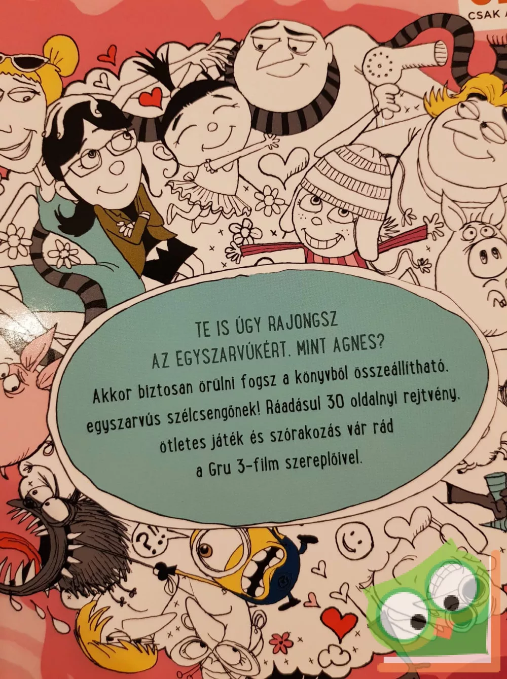 Te is úgy rajongsz az egyszarvúkért, mint Agnes? Akkor biztosan örülni fogsz a könyvből összeállítható egyszarvús szélcsengőnek. Ráadásul 30 oldalnyi rejtvény, ötletes játék és szórakozás vár rád a GRU 3-film szereplőivel