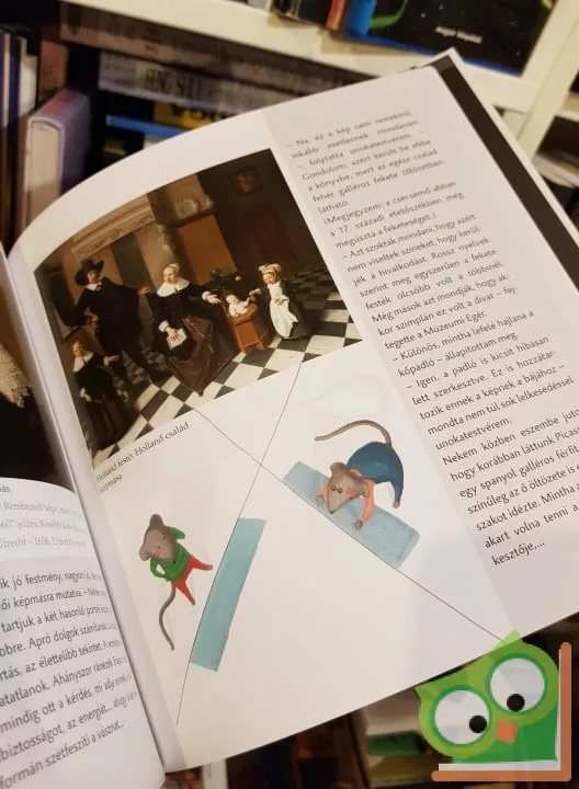 A Múzeumi Egér és unokatestvére művészeti vizsgálódásának tárgya ezúttal a fekete-fehér. Sétájuk során megismerkednek többféle grafikai technikával, kompozíciós elvekkel, és a fekete-fehér szimbolikájával; szó esik a fotóról, ahogy az absztrakt művészetről is. Mindezek mellett újabb információkhoz juthatunk a művészetkedvelő egerek titkos életét illetően is.