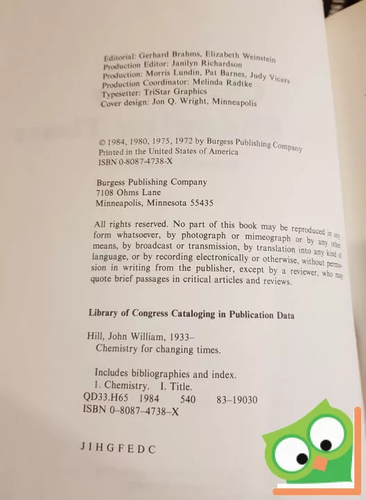 John W. Hill: Chemistry for Changing times 4. (Ritka)