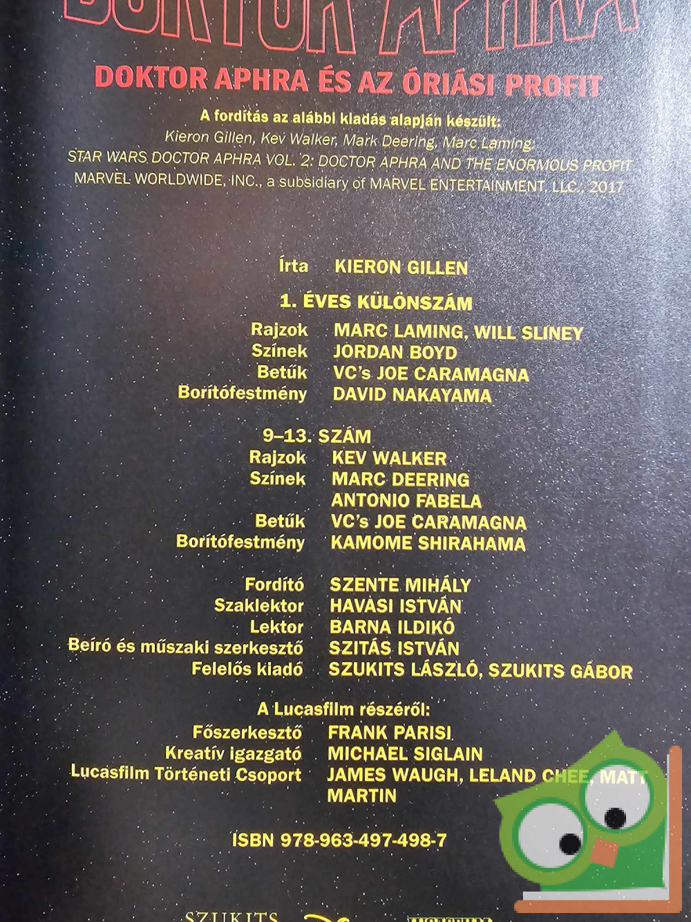 Ez a képregény gyűjtemény a MARVEL Doktor Aphra sorozatának 9-13. számát foglalja magában, az első éves különszámmal együtt. A kötetben található történeteket Kieron Gillen írta és Kev Walker, Marc Laming valamint Will Sliney rajzolta.