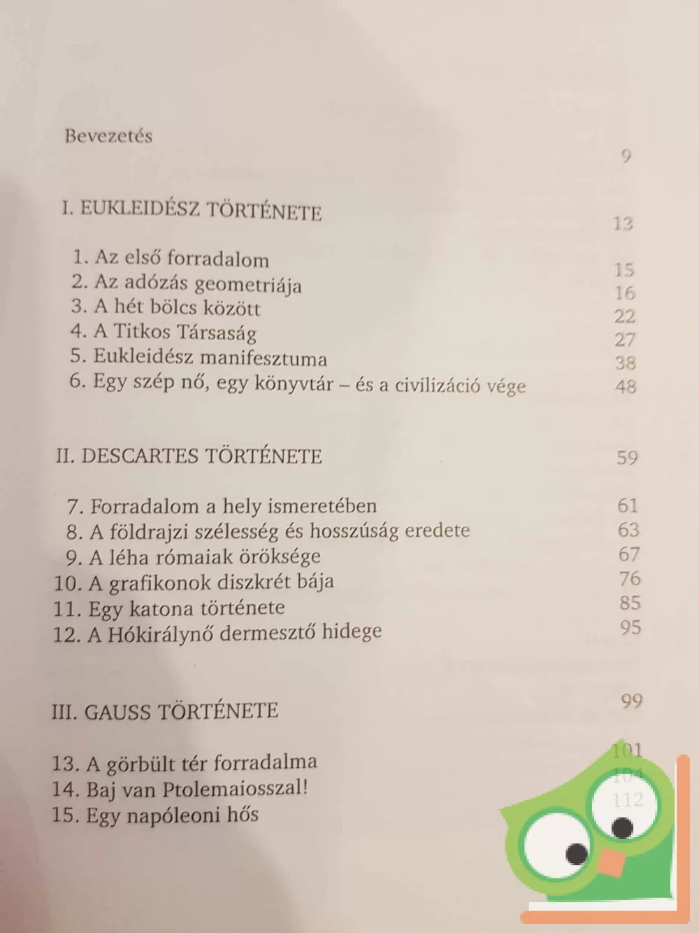 Az Eukleidész ablaka című könyvben Leonard Mlodinow pompás idegenvezetőként kalauzol végig bennünket a geometria öt forradalmának eseményein, a görögök párhuzamosokról alkottott fogalmától a legutolsó hipertér-elképzelésekig. Bemutatja, hogy a térrel - legyen az a nappali szoba vagy egy másik galaxis - kapcsolatos egyszerű kérdések miként lehettek a legmagasabb szintű tudományos és technikai eredmények rejtett mozgatórugói. A precíz és hiteles kutatás, valamint a könnyen érthető, humoros történetmesélés szerencsés elegye teszi megdöbbentően eredetivé a geometria elsőbbségének bizonygatását. Akik valaha átnéztek már Eukleidész ablakán, azok számára a tér, az anyag és az idő már soha nem lesz olyan, mint előtte volt.