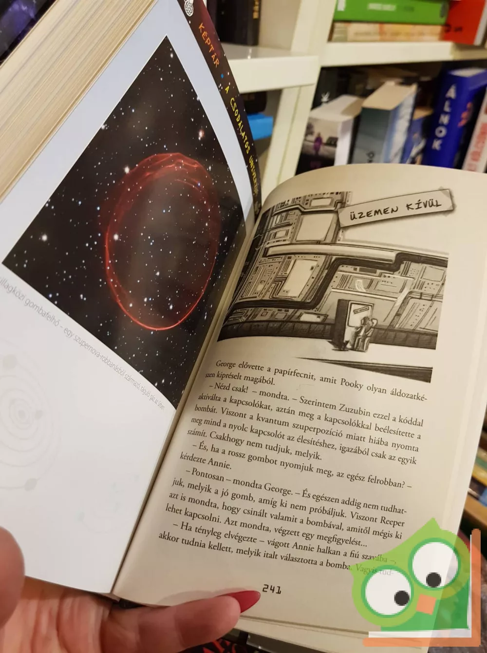 Mikor George találkozik új szomszédaival – Annie-vel, és tudós apjával, Erikkel – rábukkan egy titkos kulcsra, mely új, rejtett ablakot nyit számára a világra. Mégpedig a világűrből! Eriké a világ legfejlettebb számítógépe, a szuperintelligens Kozmosz, aki George-ot és barátait az univerzum bármely pontjára képes elrepíteni. George egyszercsak egy hullámvasúton találja magát, ami a végtelen világűrben száguldozik vele: bolygók mellett suhannak el, egy aszteroida viharon vágnak keresztül, egészen a Naprendszer legszéléig, és még azon is túl. De valaki másnak is tervei vannak Kozmoszszal – és ezek a tervek szörnyű veszélybe sodorják Eriket és George-ot. Mert nincs a világűrben semmi, ami veszélyesebb lenne a fekete lyuknál… Ez az ínycsiklandó könyvmolyeledel egy izgalmas és humoros kaland alapján készült, Stephen Hawking-módra. A legújabb fekete lyukakkal foglalkozó elméletek felhasználásával, és érdekfeszítő tudományos ismeretekkel fűszerezve a világűrről és a bolygókról. És a hab a tortán, hogy rengeteg valódi fotót találhatunk benne a világűrről!