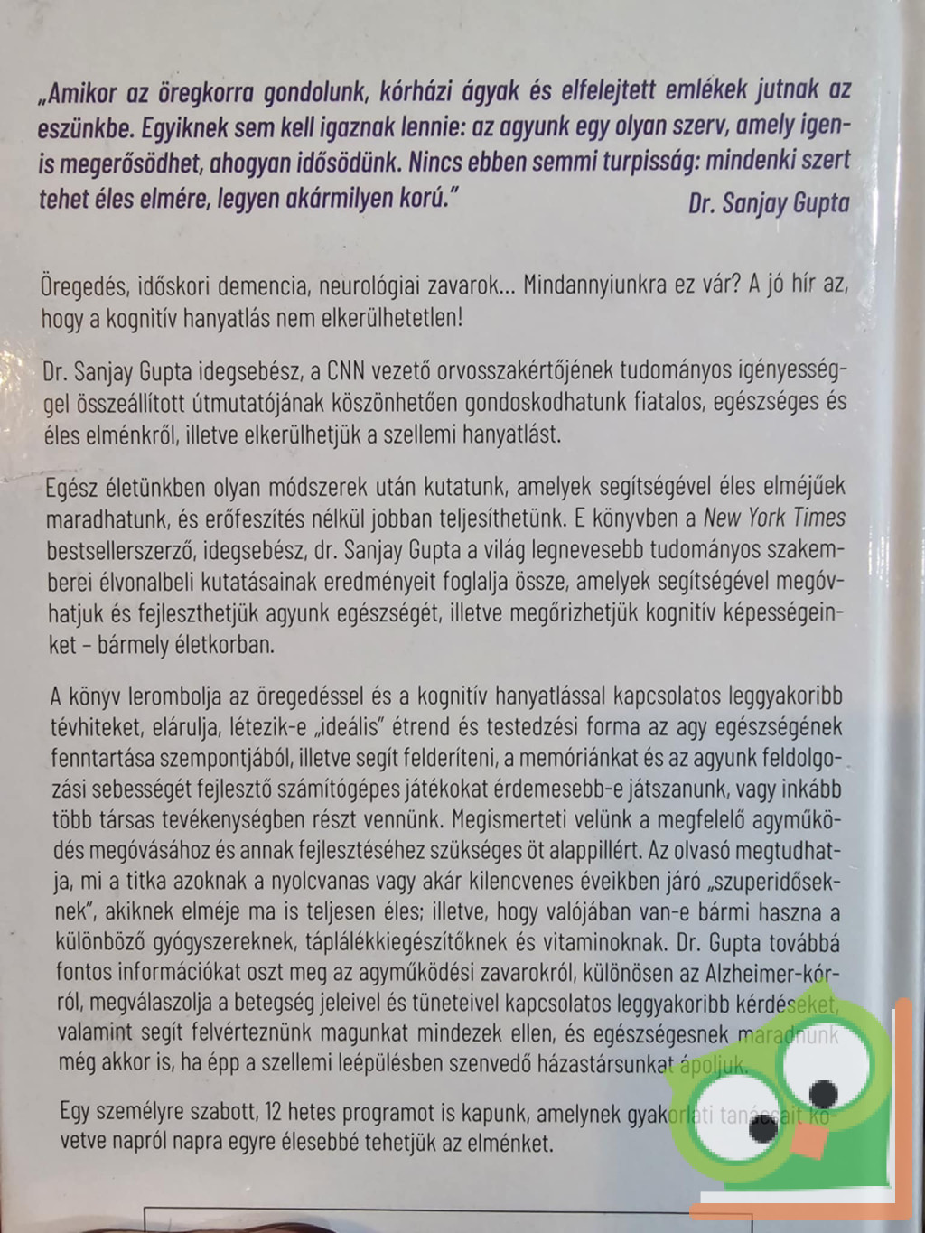 Dr. Sanjay Gupta idegsebész, a CNN vezető orvosszakértőjének tudományos igényességgel összeállított útmutatójának köszönhetően gondoskodhatunk fiatalos, egészséges és éles elménkről, illetve elkerülhetjük a szellemi hanyatlást.