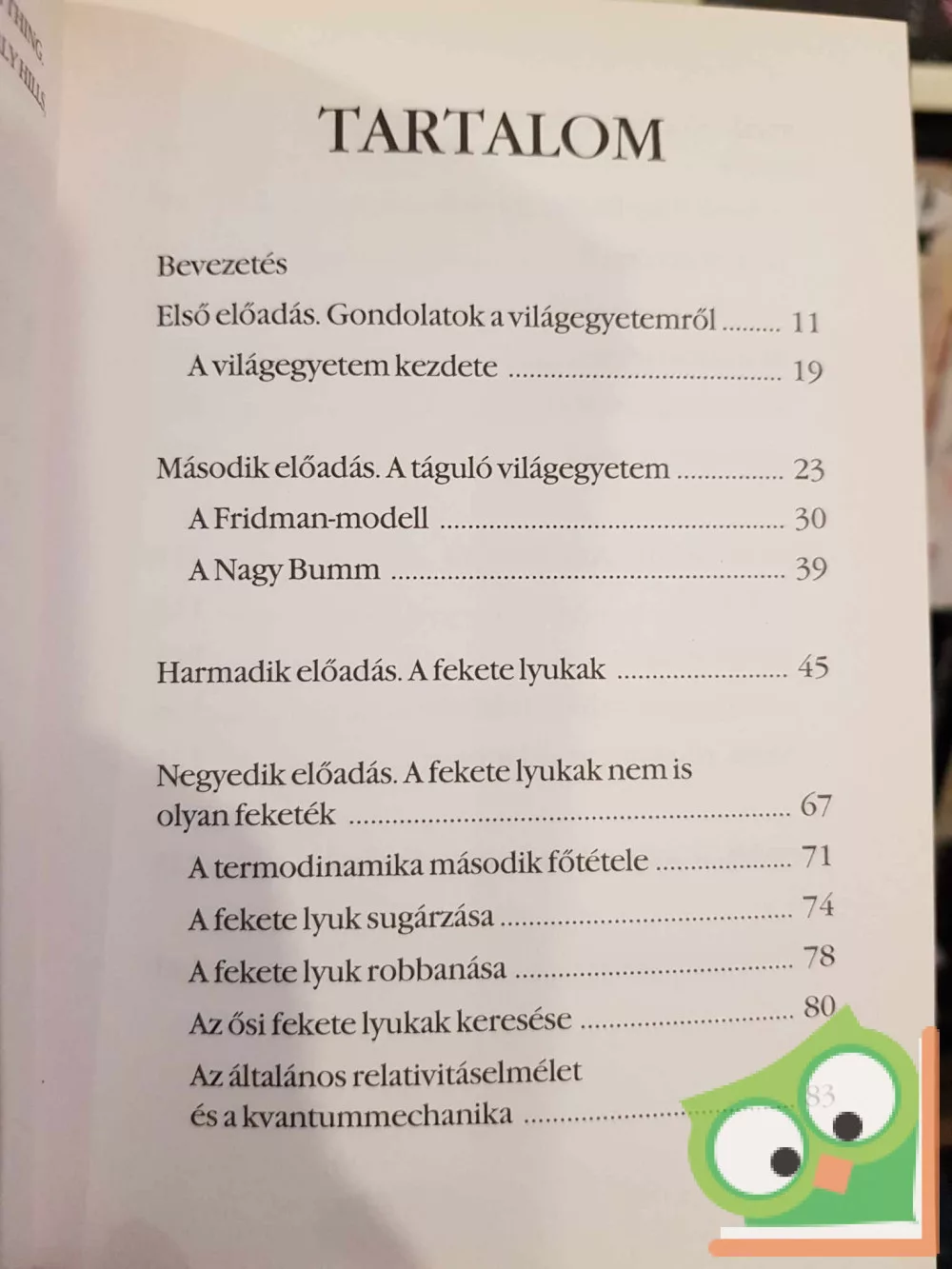 A mindenség elmélete hét előadást tartalmaz, amelyekben S.W.Hawking, a neves tudós, a tudomány nagy népszerűsítője fejti ki a világegyetem ismereteink szerinti történetét. Hawking felfedező utazásra hív tehát mindenkit a kozmosz világába, és arra készített, hogy megtaláljuk benne saját helyünket. Ez a könyv azoknak íródott, akik már néztek fel az éjszakai égboltra, és eltűnődtek azon, hogy mi is van odafönn, és mindaz hogyan került oda.