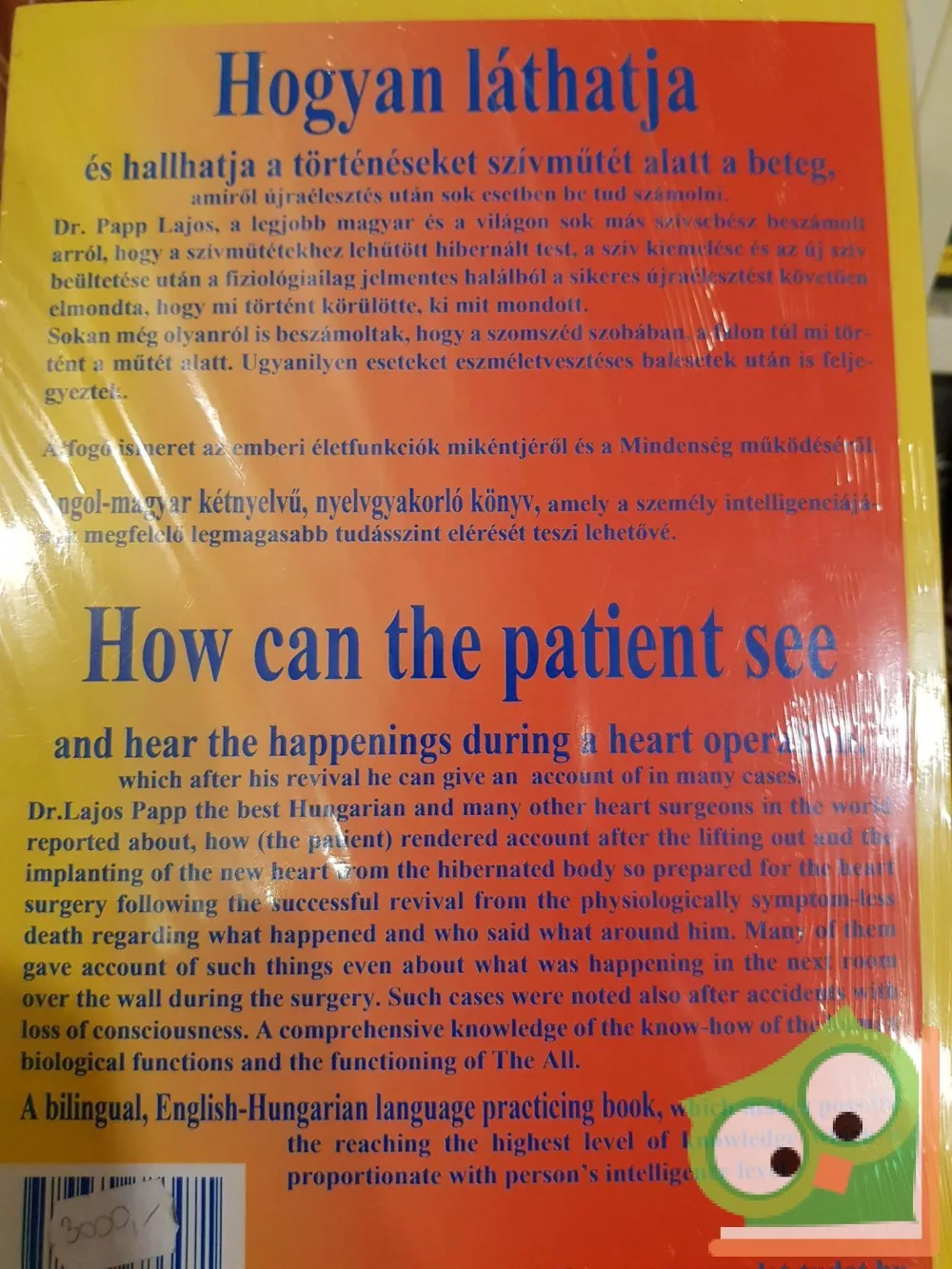 Hogyan láthatja és hallhatja a történéseket szívműtét alatt a beteg, amiről újraélesztés után sok esetben be tud számolni. Dr. Papp Lajos, a legjobb magyar és a világon sok más szívsebész beszámolt arról, hogy a szívműtétekhez lehűtött hibernált test, a szív kiemelése és az új szív beültetése után a fiziológiailag jelmentes halálból a sikeres újraélesztést követően elmondta, hogy mi történt körülötte, ki mit mondott. Sokan még olyanról is beszámoltak, hogy a szomszéd szobában, a falon túl mi történt a műtét alatt. Ugyanilyen eseteket eszméletvesztéses balesetek után is feljegyeztek. Átfogó ismeret az emberi életfunkciók mikéntjéről és a Mindenség működéséról. Angol-magyar kétnyelvű, nyelvgyakorló könyv, amely a személy intelligenciájának megfelelő legmagasabb tudásszint elérését teszi lehetővé