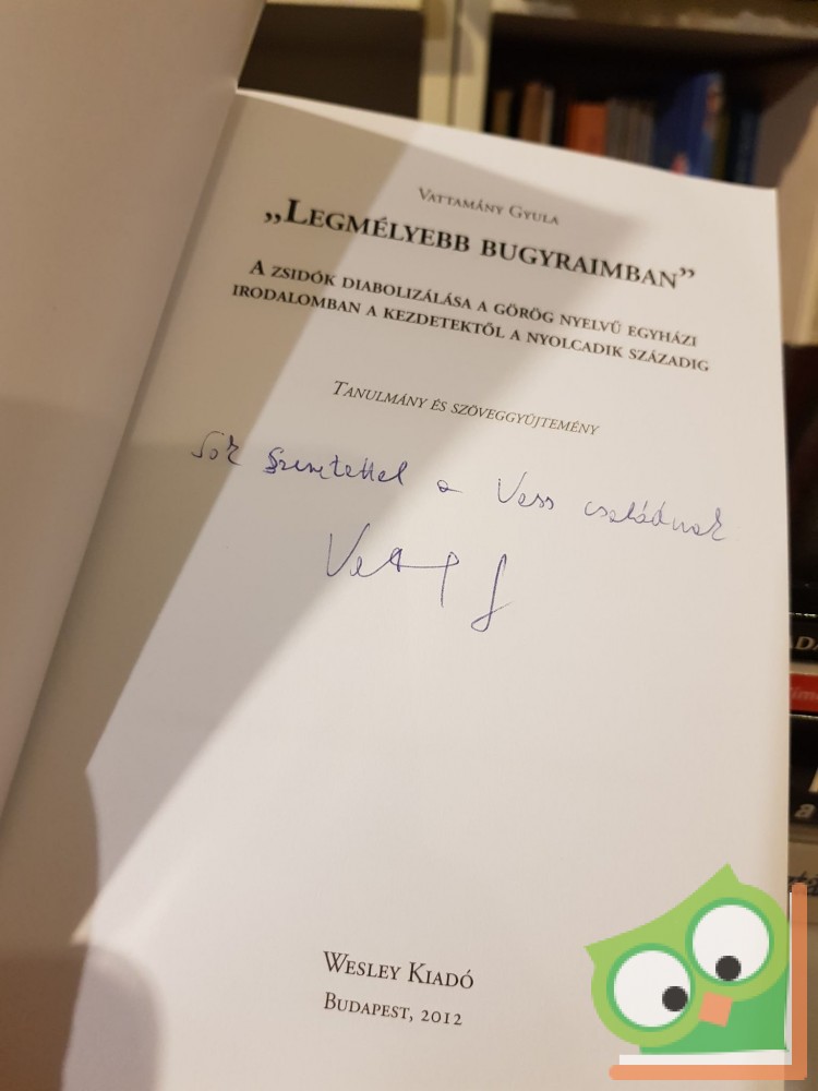 „Megtisztelő, hogy néhány bevezető mondatot illeszthetek Vattamány Gyula (…) kötetéhez. A szerző -e témában- másodszor ajándékoz meg bennünket nélkülözhetetlen gondolatokkal. Előző kötete, Aranyszájú Szent János A zsidók ellen című beszédgyűjteményének a fordítása és kommentárja kiváltotta a szakma riadt távolságtartását és hallgatását is. Félek, hogy hasonló sors vár erre a műre is.”