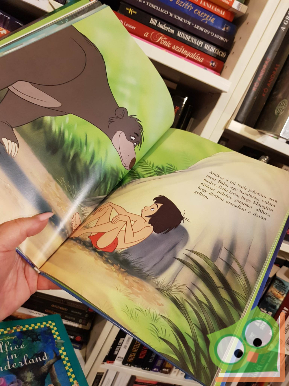 Jóban-rosszban vele tart újdonsült barátja: Balu, a medve, és lépten-nyomon olyan kiálhatatlan alakok nehezítik útját, mint Lajcsi, az orángután, Ká, a hipnotizőr kígyó és Sír Kán, a tigris. Maugli végül mégis megtalálja az utat az emberek közé, de nem emberi, hogy közben mi mindenen kell keresztülmennie.