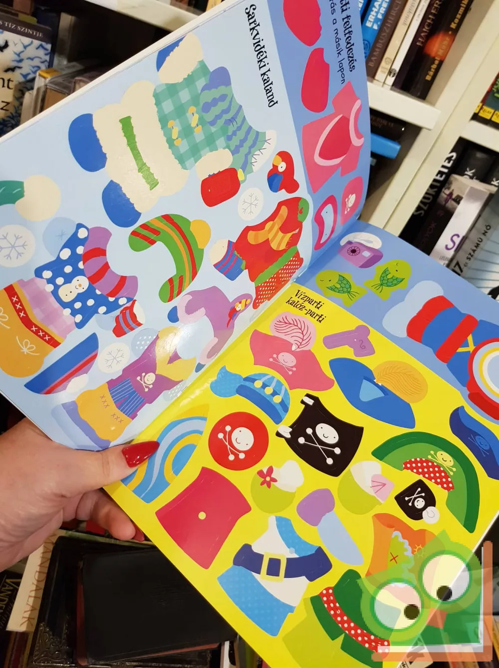 Van egy fiús, no meg egy lányos történetünk, melyek kalózokról és hercegnőkről szólnak. Mindenkit fel kellene öltöztetni a megfelelő helyszínen a megfelelő ruhájába. Nagyon jó mókának ígérkezik, főleg, hogy kötetenként 60-60 gyönyörű, fényes, színes matrica áll a gyerekek rendelkezésére. Úgy öltöztethetik figuráikat és környezetüket, ahogy nekik tetszik, hogy megelevenedhessen a tenger, a kalózhajó, a kincses sziget világa, illetve a kastélyok dombja, a bálterem vagy a királynő trónterme.