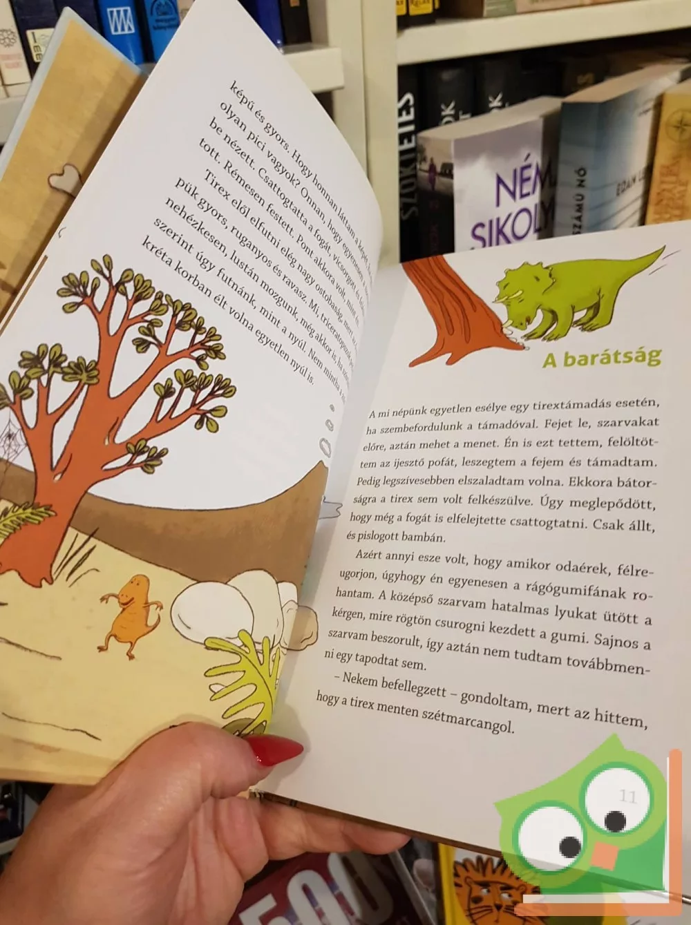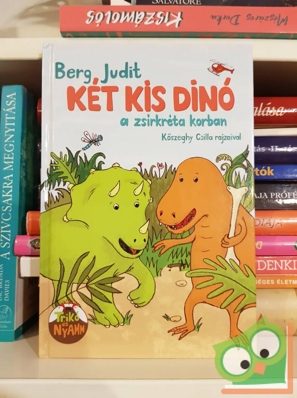Hadd mutassuk be Trikót, történetünk főhősét! Trikó triceraptosz. Három szarvat visel a fején, mégis nyugodt és szelíd. Állítólag páfrányevő, de a főtt kukoricát és a gumicukrot sokkal jobban szereti. Aztán itt van Nyamm. Ő tirex. Nagyon erős, harcias és gyors, de nem a sok eszéről nevezetes. Húsevő, de bármit hajlandó megkóstolni, ami az útjába kerül. Kedvence a véres dinócsigolya és a téliszalámis zsemle. Különös ismertető jegyük még: mindketten nagyon picik. Hogy miért ekkorák, és hogyan kerültek a zsírkréta korból a mi világunkba, megtudhatjátok Berg Judit legújabb meséjéből, melyhez Kőszeghy Csilla rajzolt nagyon vicces triceraptoszokat, tirexeket, raptorokat, sőt, cinkeszauruszokat is. Kezdő olvasóknak is ajánljuk!